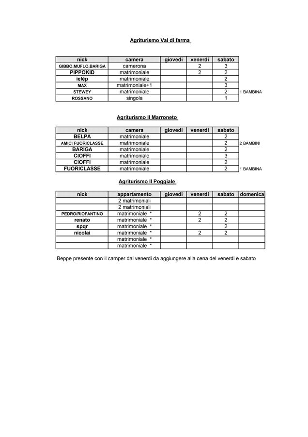 sposteremo due camere del venerdi al poggiale ... ragazzi mi scuso ancora per spostamenti last minute