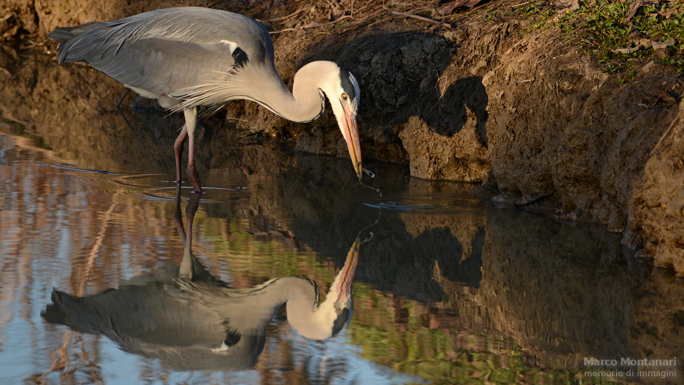 airone cenerino in atteggiaemnto di caccia