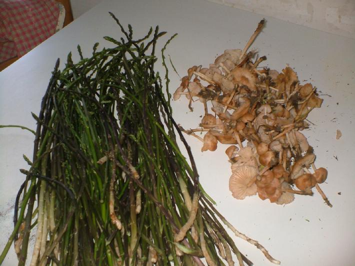 16. Sì il posto è molto bello e sa dare belle soddisfazioni quando vuole, cosa che non è avvenuta l'anno scorso quando sembrava che i funghi fossero migrati altrove, non ci ho trovato praticamente niente....troppo secco e in questo posto se la pioggia è poca non nasce niente! Infatti ad inizio 2008, appena le piogge si sono fatte più abbondanti, si è fatto subito perdonare con degli splendidi, bellissimi, buonissimi e inaspettati esemplari di clitocybe maxima. Oggi, dopo aver scoperto che la mia digit ha la funzione macro (sono proprio un dilettante!!!!!), sono tornato in zona e ho provato a fotografare le uniche gambesecche rimaste .....niente funghi, ma mi sono consolato con una montagna di asparagi!!!! Ciao Nic